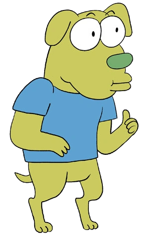 Bitten by a radioactive dog, this dog became a man dog. Nobody knows what motivates Dogmun, but he can be seen hanging around almost everywhere. Dogmun doesn't behave quite like other humanoid animals in the series (such as Potato, Chameleon Jr. or even Crinkly Wrinkly), having much more animalistic traits and not even being capable of speaking (as shown in the episode "OK Dendy! Let's Be K.O.!").