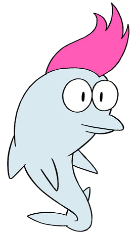 Dolph Finn is a white dolphin with a pink mohawk.